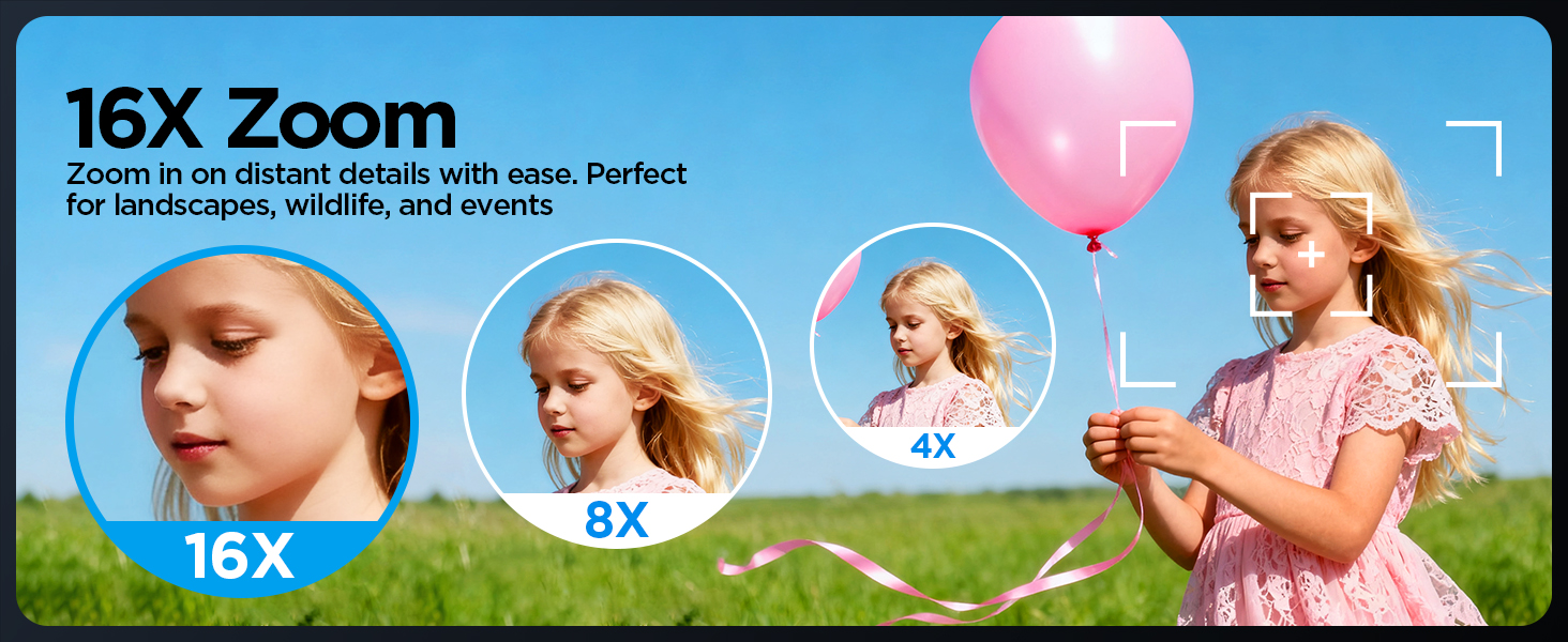 16X Zoom & Pocket-Size Design: Zoom in with clarity using the 16x digital zoom. Small and lightweight, this pocket camcorder is perfect for outdoor photography, travel videos, or casual photo shoots. The sleek black body gives it a modern look suitable for boys, girls, and adults alike.