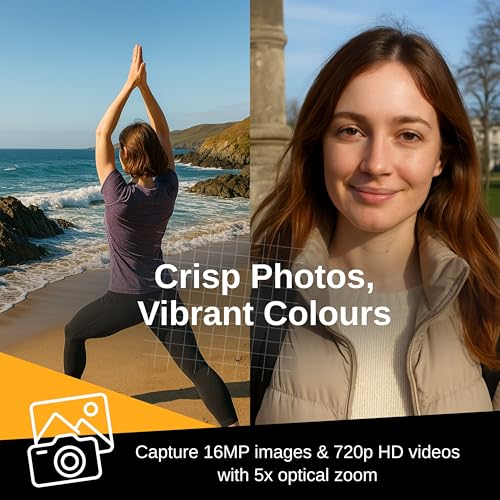 - Capture Clear Photos on the Go: The compact digital camera fits in your pocket but delivers 16MP quality and 5x optical zoom. Ideal for quick, everyday shots or spontaneous moments