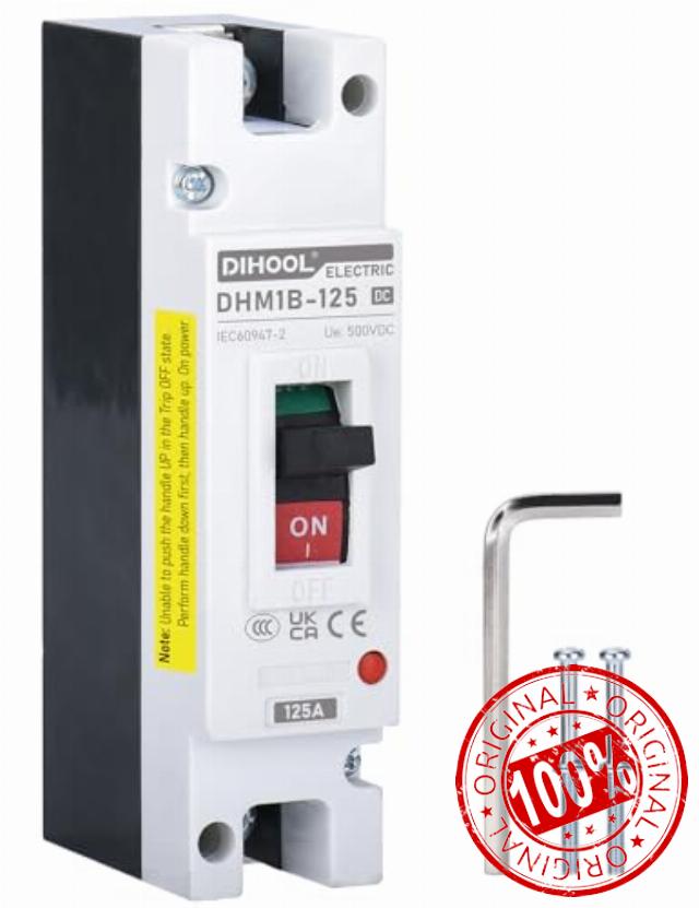 DIHOOL 125 Amp DC Breaker, Battery Disconnect Switch 500V, Thermal Magnetic Trip for Solar, Main Power, UPS