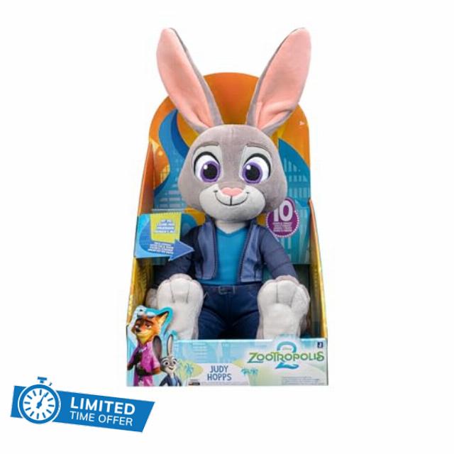 - SOUNDS & PHRASES: Press the belly of this plush inspired by Judy Hopps to activate 10+ recognisable sounds and phrases from Zootropolis 2.