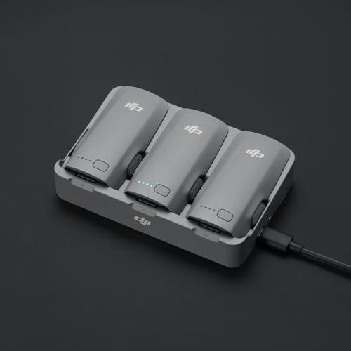 - Tips:* The number of batteries that can be charged simultaneously depends on the power of the charger used. Using a charger rated above 45 W allows you to charge three batteries at the same time. Using a charger rated between 30 W and 45 W allows you to charge only two batteries simultaneously. Using a charger below 30 W will charge the batteries sequentially, from the highest remaining charge to the lowest. Refer to the charging protocols supported by the charger. ** Charging time is measured in a test environment with a temperature of 25° C (77° F). Actual charging time may increase due to higher ambient temperatures or variations in mains voltage between regions.