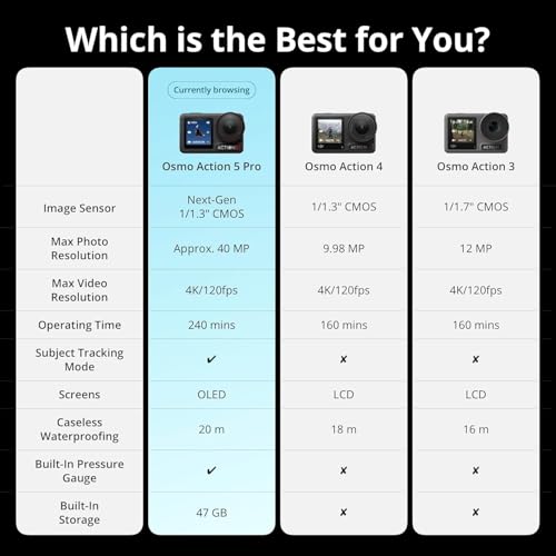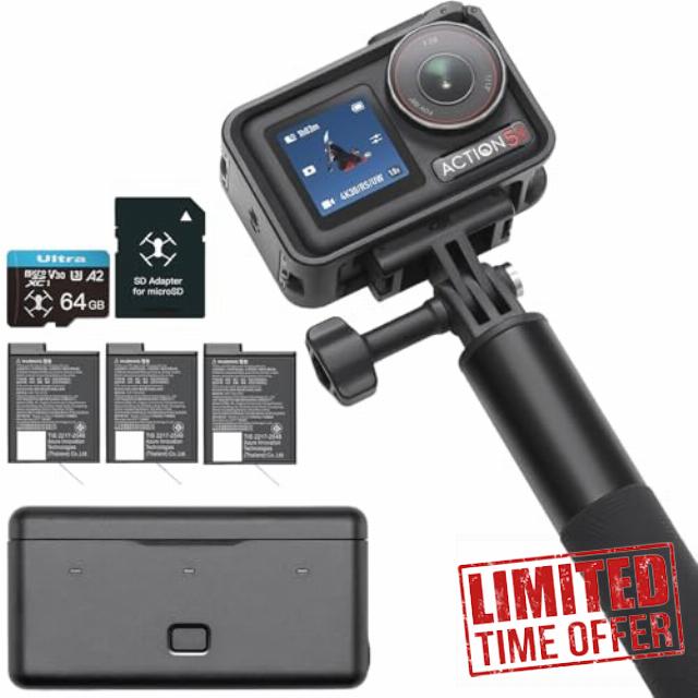 - Bundle Includes: 1 x Osmo Action 5 Pro – Waterproof Action Camera with 1/1.3" Sensor, 4K/120fps Video, Subject Tracking, Stabilization, Dual OLED Touchscreens, Action Camera 4K Ideal for Sports With Standard Accessories | 1 x 64GB microSDXC Card