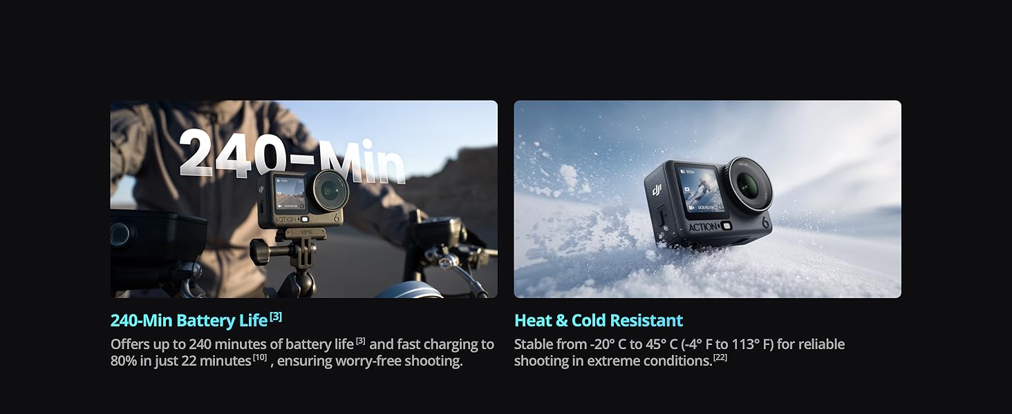 - Reliable Power in Any Weather – Shoot up to 4 hours in normal conditions, with a cold-resistant design that keeps rolling when temps drop. A 4K camera built for creators and sports fans.