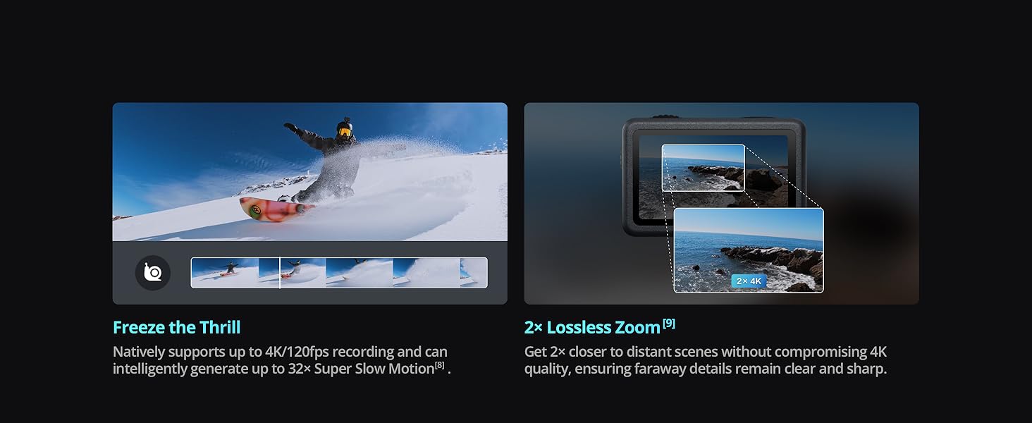 - Detailed Action in Every Frame – The all-new 1/1.1″ square sensor boosts this sports camera's image quality, delivering vibrant colors and sharp 4K video for vlogging or underwater adventures.