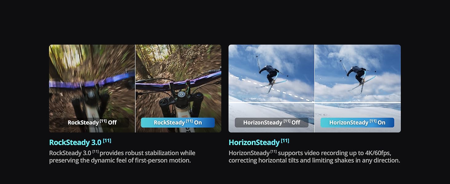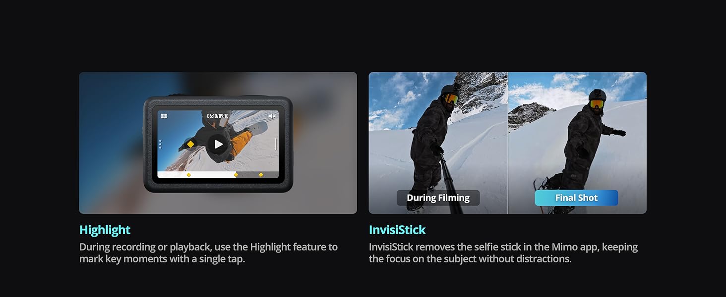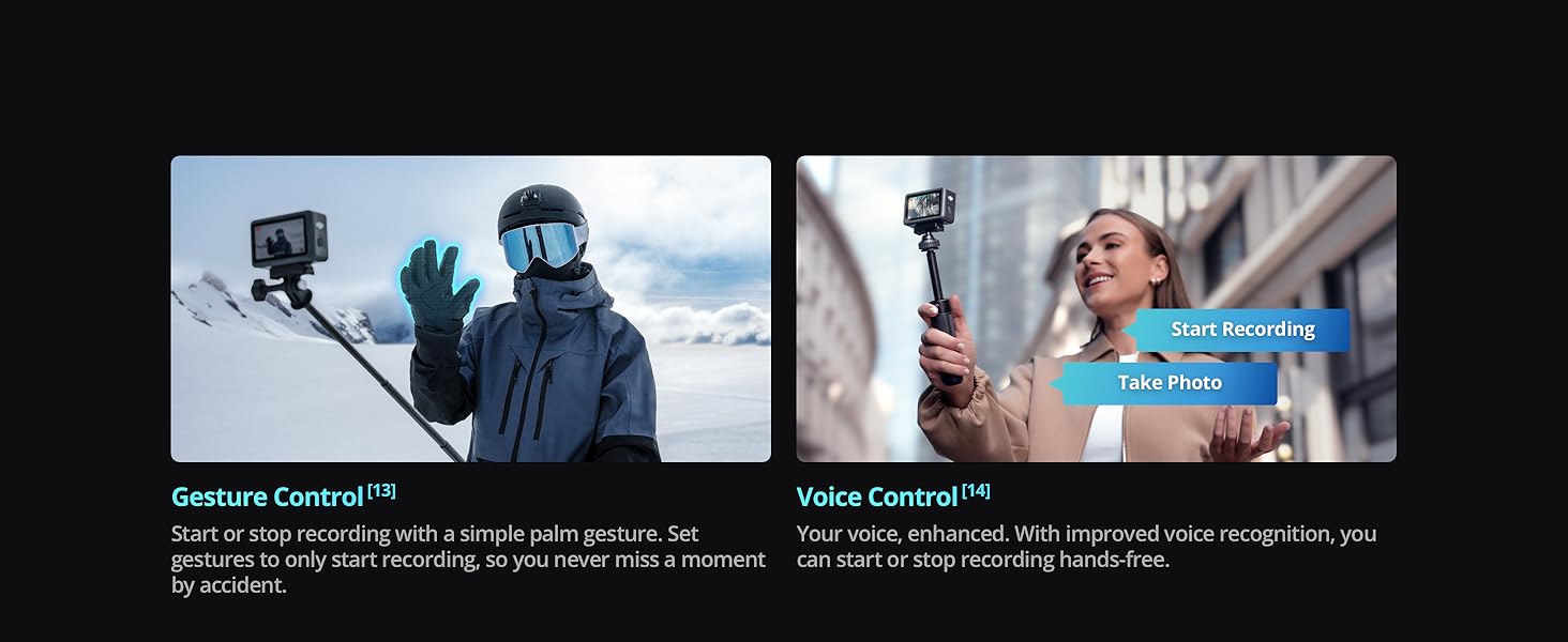 - Hands-Free, Effortless Shooting – Gesture [13] and voice [14] controls let you start recording or switch modes easily. Focus fully on your adventure with your content creator camera.