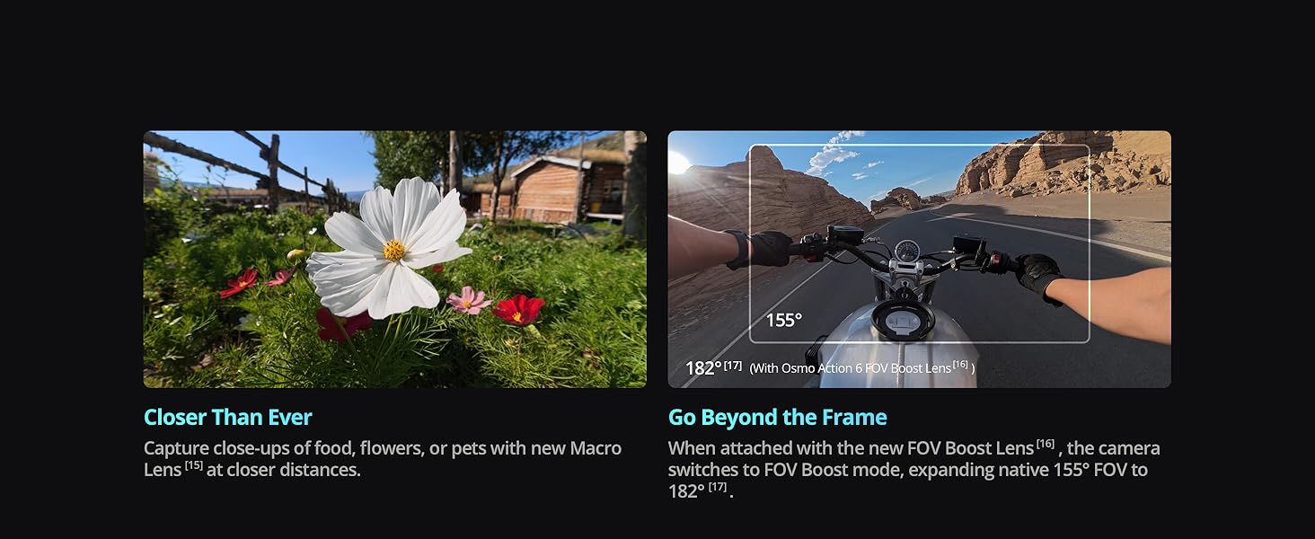 - Capture Every Scene, Day or Night – Variable aperture f/2.0 [1]–f/4.0 adapts for crystal-clear 4K footage in any light. Great for dynamic vlogs, sports, and creative shots with your action camera.