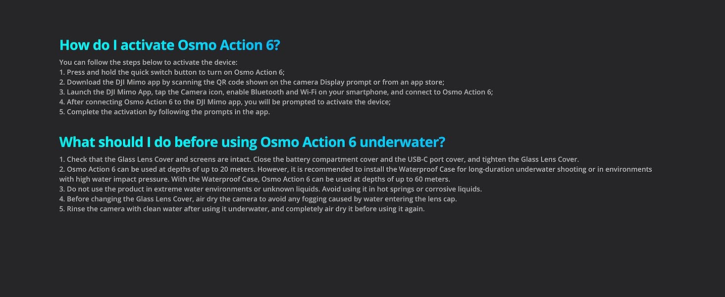 Osmo Action 6 | Osmo Action 5 Pro | Osmo Action 4 | Osmo Action 3 | |