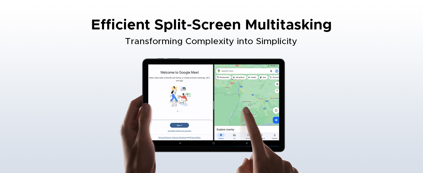 - 【8580mAh Large Battery + 7.9mm】The 11 inch tablet boasts an 8580mAh ultra-high capacity battery, delivering up to 12 hours of continuous video streaming or 15 hours of music playback! Combining this massive battery with an ultra-slim 7.9mm profile—thinner than a magazine—DOOGEE TAb A9+ fits comfortably in one hand without any burden. Easily slipping into a small bag, it's the perfect companion for long commutes, business trips, and travel adventures.