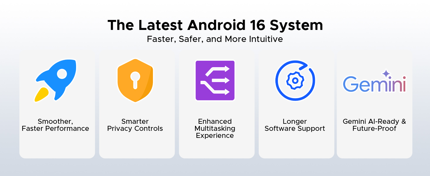 - 【2025 First Android 16 + Gemini AI】Get an early look at the 2025 android 16 tablet: where cutting-edge technology meets seamless operation. The Android 16 system revolutionizes software-hardware interaction for more efficient work and entertainment. Gemini AI acts as your personal “invisible assistant,” delivering lightning-fast email summaries, multi-turn conversations, real-time translation, and cross-app task coordination—all locally without internet access to protect your privacy. With this 11 inch tablet in hand, your productivity and entertainment experience instantly double.
