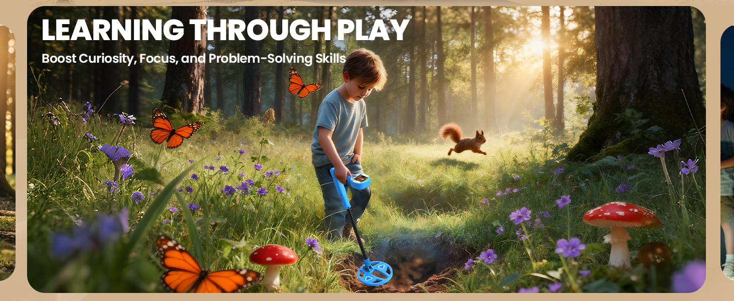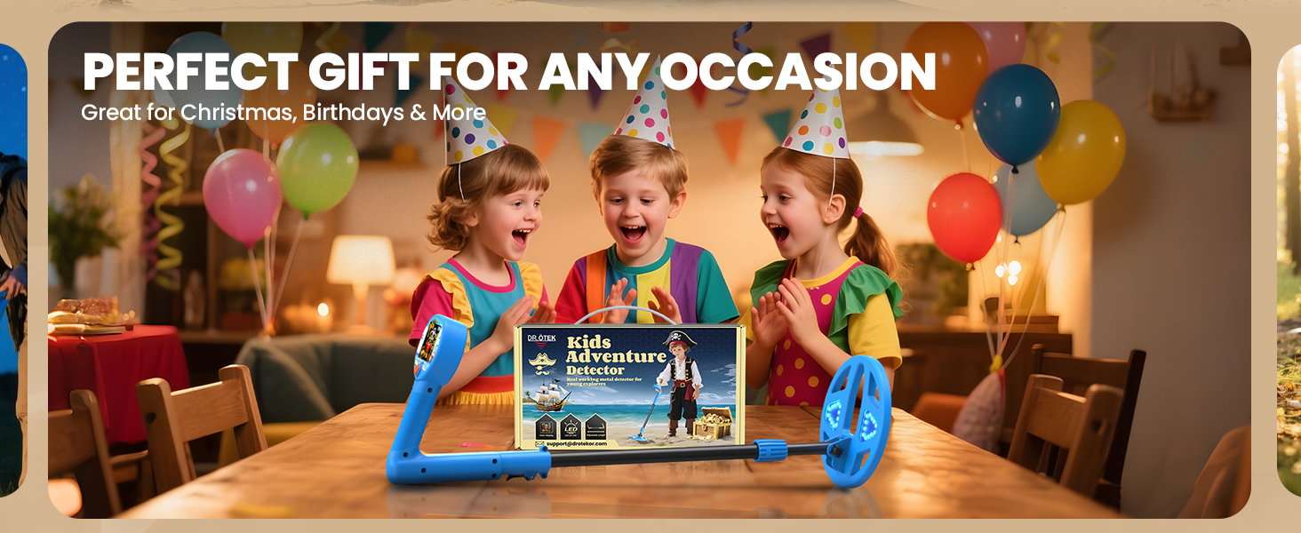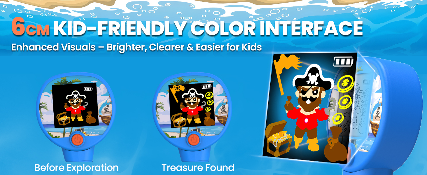 【Dynamic Color LCD Display】This kids metal detector features a vibrant color LCD screen that makes treasure hunting more exciting and easy to understand. Pirate-themed animated icons turn every find into an immersive adventure, keeping children engaged and inspired to explore outdoors.