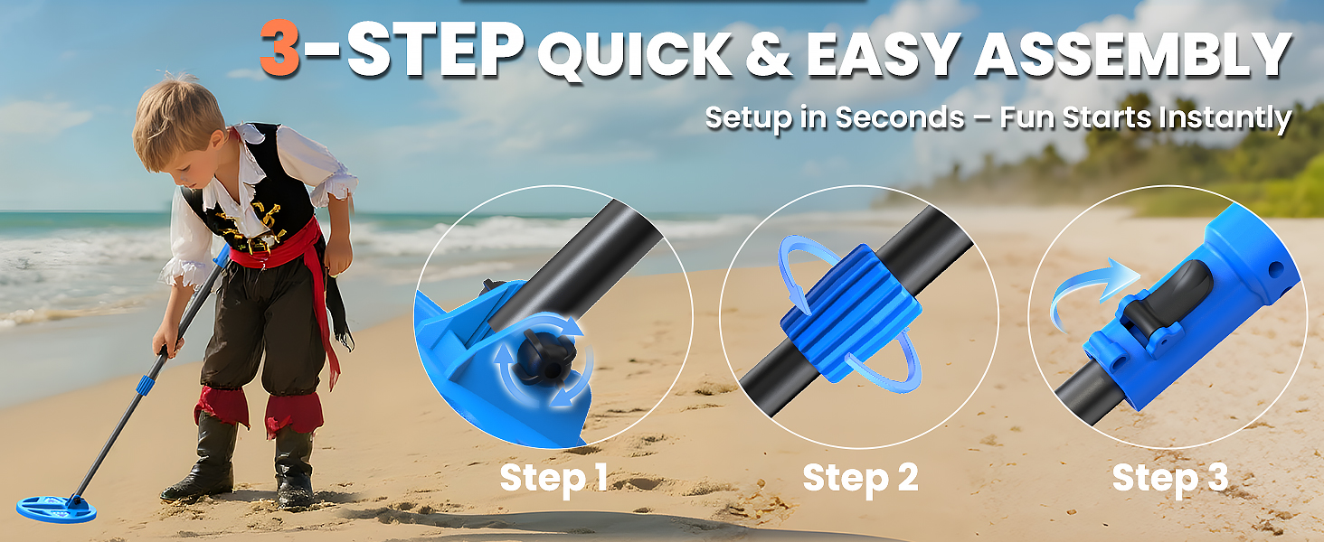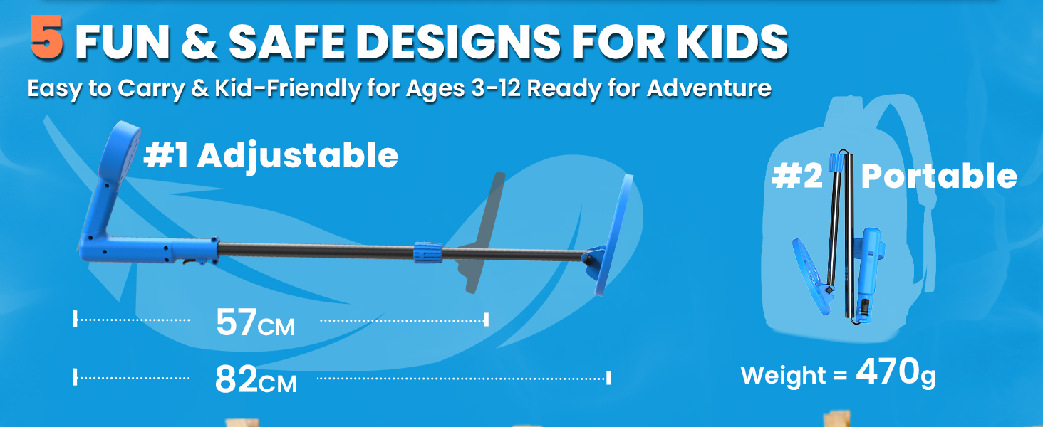 【Ultra-Lightweight & Portable】This children metal detector comes with an adjustable stem (57-82cm) for ages 3–12. Weighing just 1 lb (470g), it folds down to 30cm for 50% less storage. With tool-free setup in just 3s, young explorers can start treasure hunting anytime, anywhere.