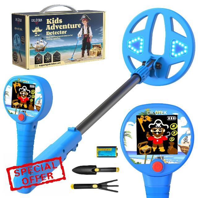 DR.ÖTEK Metal Detector for Kids – Innovative Color LCD Display, 17cm LED-Lit Coil, Adjustable & Ultra-Lightweight Kids Metal Detector, Child-Safe Rounded Design for Ages 3-12, Blue