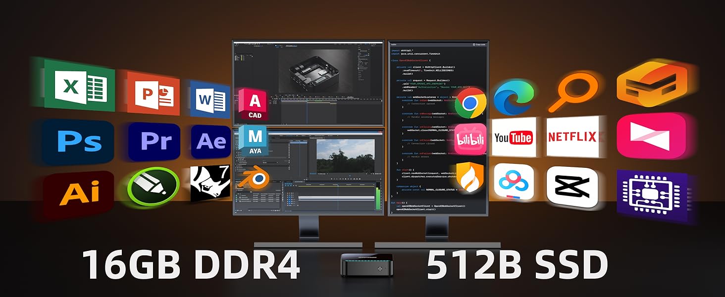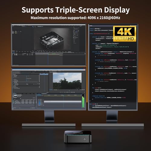 【UHD Graphics & 4K Triple Display】The N95 micro portable computer is equipped with Intel UHD graphics (with maximum dynamic frequency 1.20 GHz), ensuring faster image processing speeds and 4K UHD video playback capabilities. With 3 HDMI 2.0 ports and 1 DP interface, it supports triple displays, creating a larger display area for you to enjoy 4K UHD visuals and entertainment, as well as higher work efficiency.