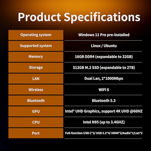 DreamQuest Officeplus Mini PC W-11 PRO Intel 12th Processor N95 (up to 3.4 GHz) 16GB DDR4 RAM 512TB M.2 SSD,mini Desktop computer Supports With Dual 4K/WiFi/Bluetooth/Ethernet/HDMI/LAN/USB C