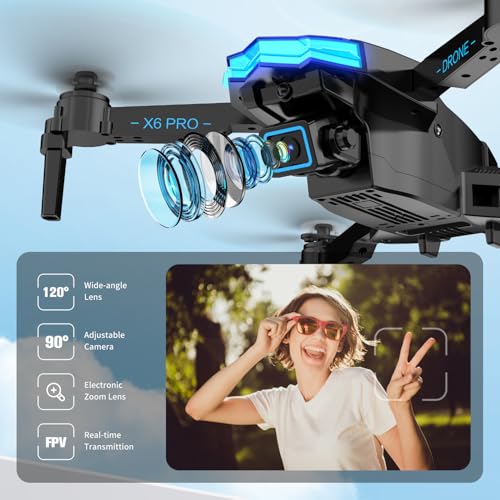 【Longer flight time and safer】With two modular batteries, the drone with camera can support a flight time of 20-25 minutes. Modular batteries are safer to charge and easier to install. The low battery alarm reminds you to retrieve the drone if you lose it.