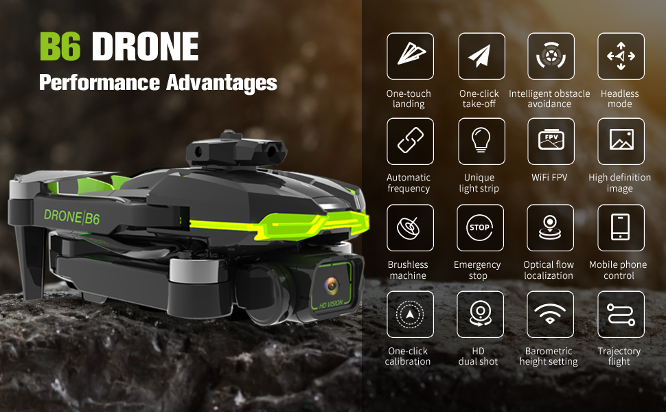 【Brushless Motor】This drone with camera adopts a powerful brushless motor, which greatly improves the wind resistance of the drone with camera. Low noise, smooth operation, high efficiency, fast heat dissipation, which increases the service life of drone.
