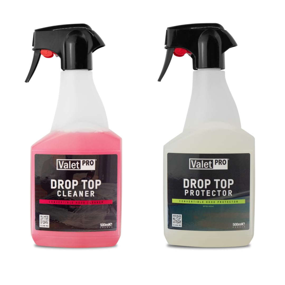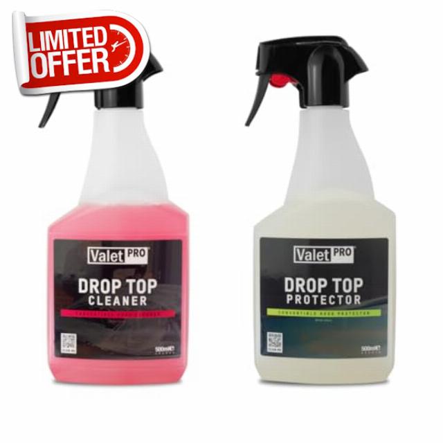 Clean and Protect your convertible’s soft top with our total-care duo. This kit delivers a powerful yet gentle deep clean using Drop Top Cleaner’s pH-neutral formula — followed by the Drop Top Protector’s protective film that actively repels grime and prolongs fabric life. Effortless spray-and-go application keeps your hood looking fresh and shielded all season long. Bundle up now and save—best safeguard before winter sets in.
