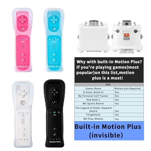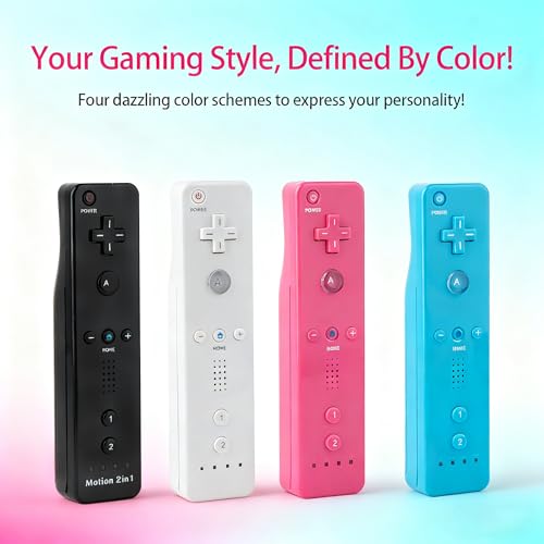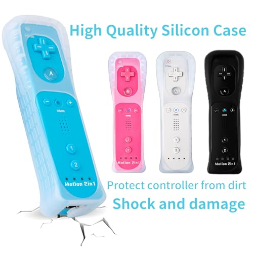DTianSir 4Pack Motion Plus Wii Remote Controllers with Silicone Case & Wrist Strap,Wii Remote Controllers with Built in Motion Plus Compatible for Wii U Consoles (Black+White+Blue+Pink)