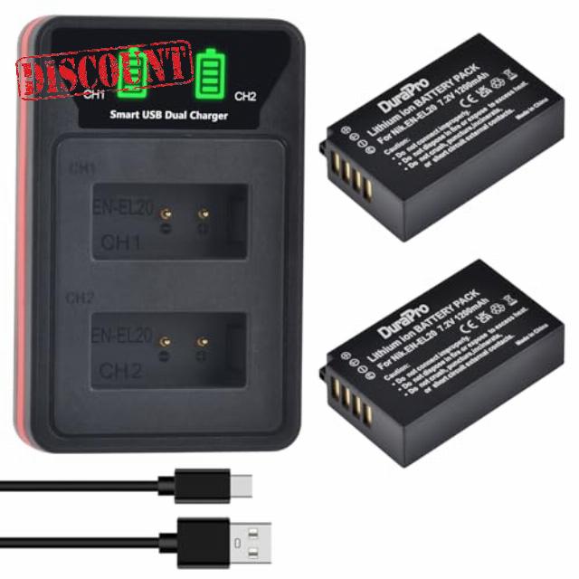DuraPro 2Pcs 1200mAh EN-EL20 EN-EL20A Battery + LCD Dual USB