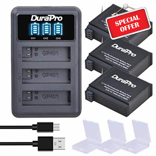 Durapro 3Pcs 1680mAh AHDBT-401 Battery + LED USB 3-Slots