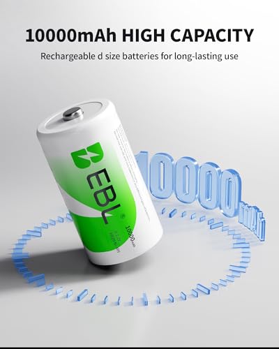 EBL 10000mAh Rechargeable D Batteries 4-Pack with LCD
