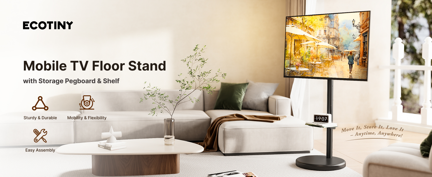 ECOTINY Height Adjustable Rolling TV Stand for 37-86 Inch TV