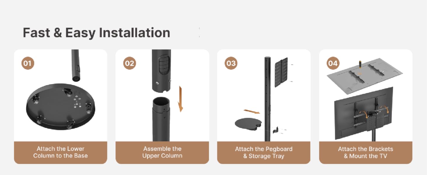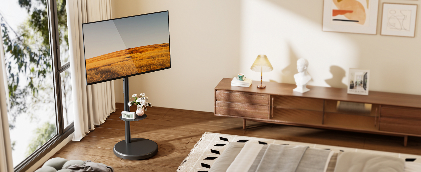 Smooth and Silent Hidden Wheels: Equipped with hidden, smooth, and silent wheels, this stand allows effortless movement without disturbing the peace. Whether you're moving it from room to room or adjusting its position, the wheels ensure a quiet and seamless experience.