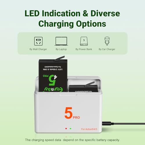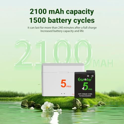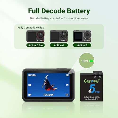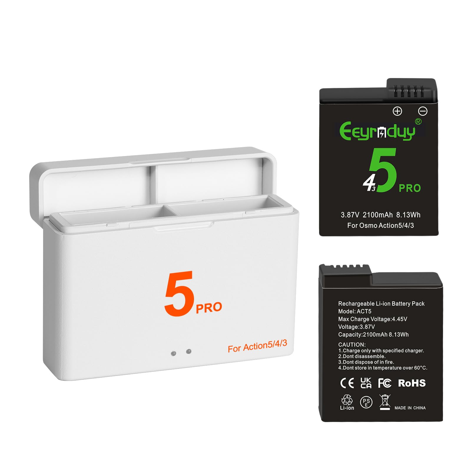 - Dual Battery Power for Extended Shooting: The Eeyrnduy Osmo Action 5 Pro/4/3 Battery Charger Kit comes with two high-capacity 2100mAh batteries, ensuring you never miss out on capturing those crucial moments, providing double the runtime for your action camera adventures