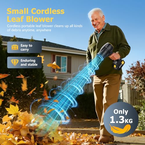One-Touch Adjustment of Wind Speed: The lightweight mini leaf blower adopts a simple press type speed control design. You only need to lightly or heavily press the trigger to infinitely adjust the wind speed, achieving precise switching from gentle dust removal to full force impact. The rechargeable leaf blower for patio maximum wind speed can reach 320CFM and 130MPH, which can gently take care of flower beds, as well as forcefully sweep through heavy fallen leaves.