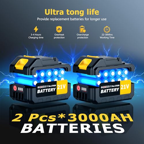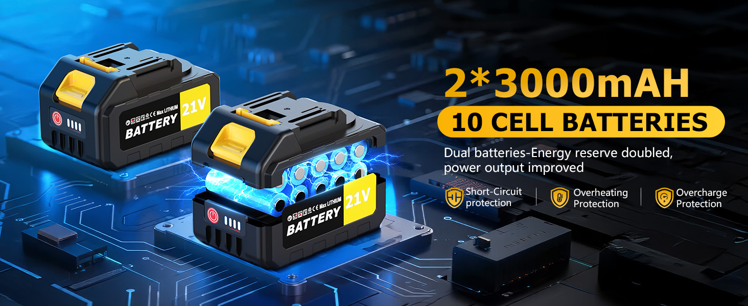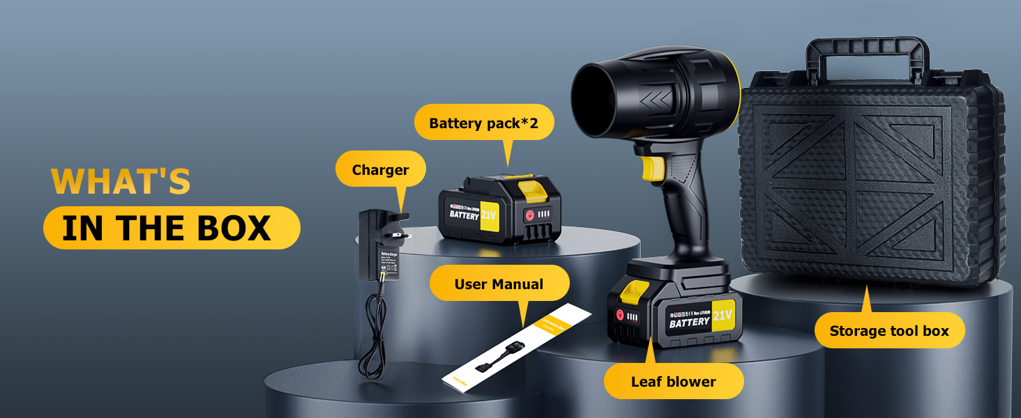 2*3000mAh High Quality Batteries:Our portable battery leaf blower comes with 2×3000mAh high-capacity batteries. A single battery can last for about 15 minutes, while a dual battery combination can achieve up to half an hour of continuous operation, making it easy to handle large courtyard cleaning. The small leaf blower cordless intelligent overheating protection system monitors temperature in real time to ensure that the battery does not overload during efficient operation.