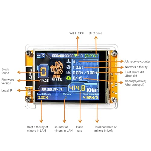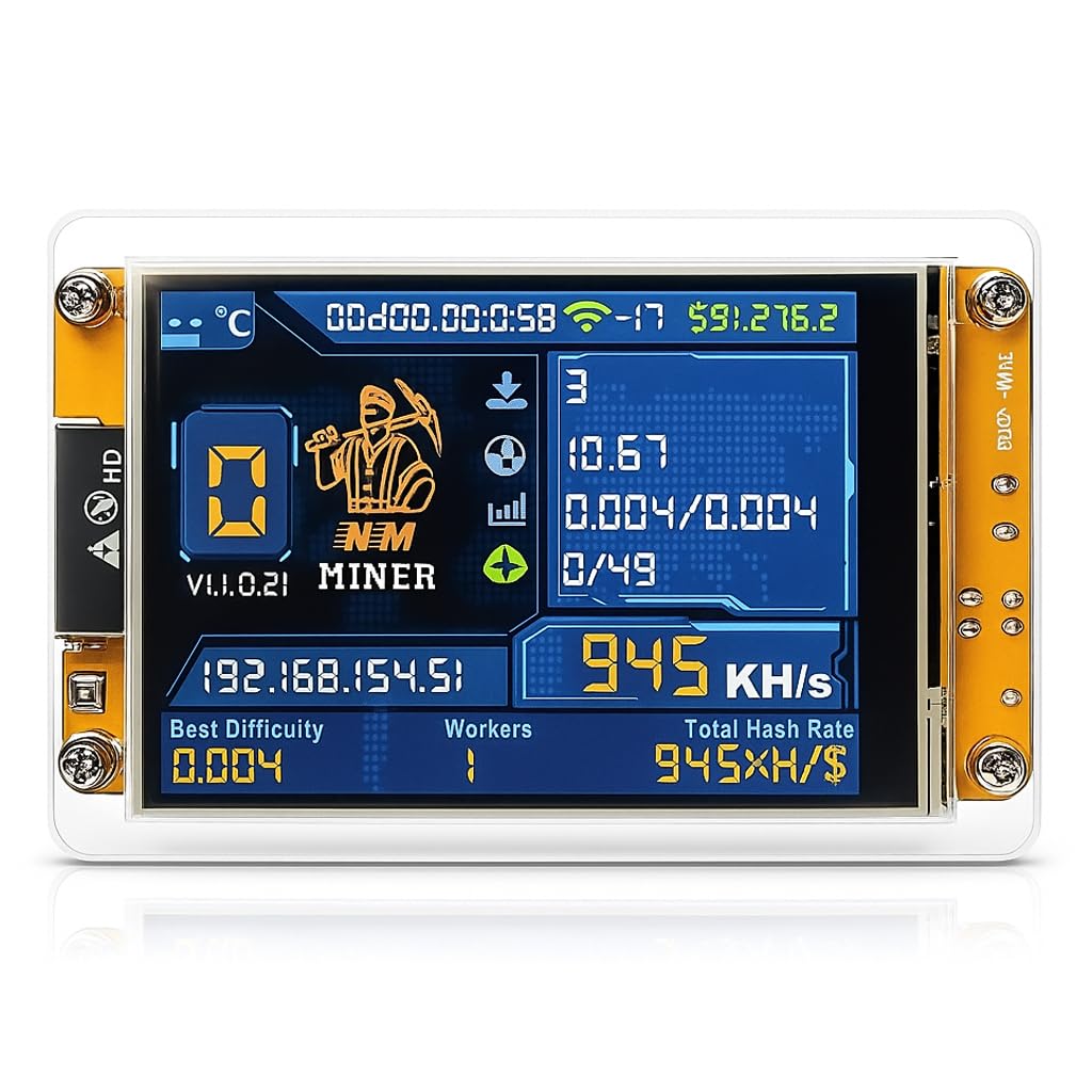 Bitcoin Miner, 2.8 Inch Display Lottery Miner, 1060KH / s Hashrate, ESP32 DROOM with WiFi Standalone Operation for BTC Mining
