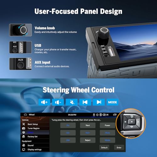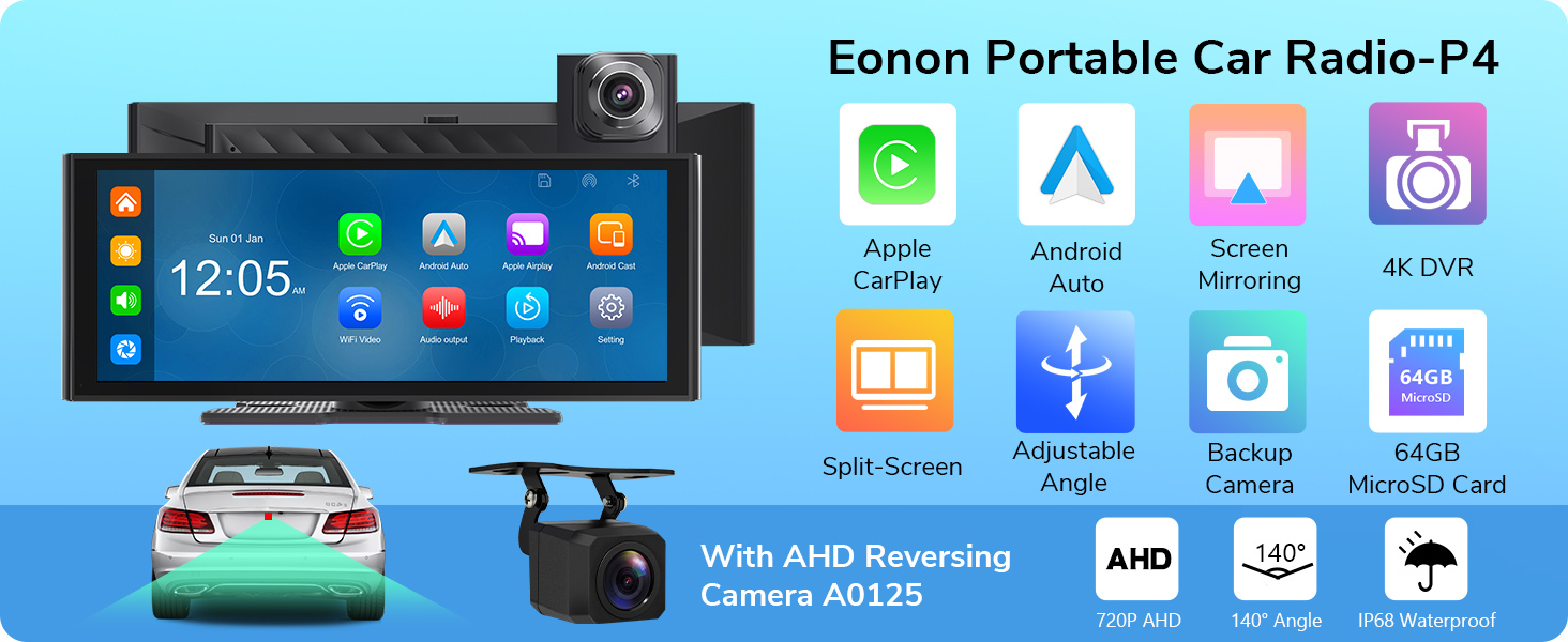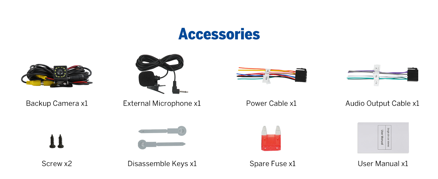 | Features | Supports screen mirroring; Supports steering wheel control; Physical volume control; Supports clock display; Supports playback memory when the device is powered off; Supports rear view camera |