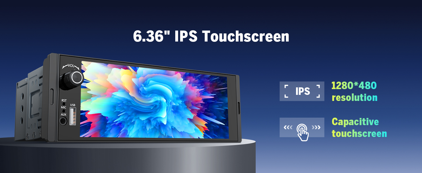 - Screen: Screen size: 6.36 inches (actual display area) IPS screen; Screen resolution: 1280 x 480; Touch: Capacitive multi-touch screen