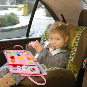 - [SOFT & PORTABLE TRAVEL TOYS]: Our Montessori toys sensory toys for toddlers is crafted from non-toxic soft fabrics and felt with no hard edges for worry-free play. With a handy carry handle, this busy board is a great travel toys for tiny hands and fits effortlessly into diaper or school bags. Great toddler toys sensory board to encourage quiet, focused play while on car, plane, travel or settings needing quiet.