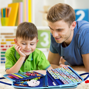 - [PLAYFUL LEARNING] – Keep your toddler happily engaged while they develop basic life skills from dressing and fine motor skills to finger dexterity. The octopus button page is designed to enhance hand-eye coordination. Develop cognitive skills with the clock, calendar, and weather page. Recognition and imagination are strengthened through the shape matching activity and fun jigsaw puzzles. Toddler can learn spelling and numbers through the hook&loop letters board and fun number threading game.