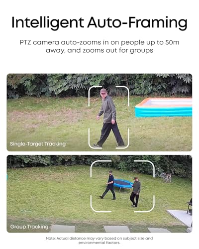 - 2-in-1 Triple-Lens Bullet and Pan-Tilt-Zoom Camera: The upper 4K wide-angle camera delivers a 130° fixed view of the entire area, while the lower 2K dual-lens Pan-Tilt-Zoom camera rotates 360° for all-around coverage.