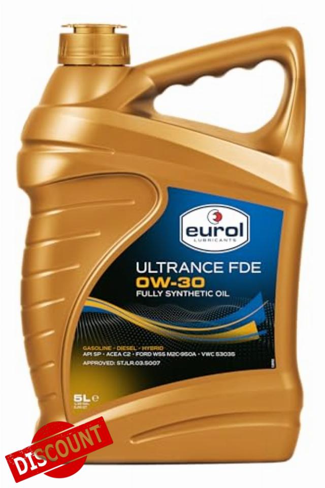 Eurol Ultrance FDE 0W-30 is a fully synthetic engine oil for gasoline and diesel engines, specifically developed for the latest Ford passenger car models. This formulation meets the Ford WSS-M2C950-A specification and provides outstanding protection and efficiency for modern engines. Approved: STJLR.03.5007 Performance Level: API SP, ACEA C2, Ford WSS MC2-950A, Jaguar Land Rover, STJLR.03.5007