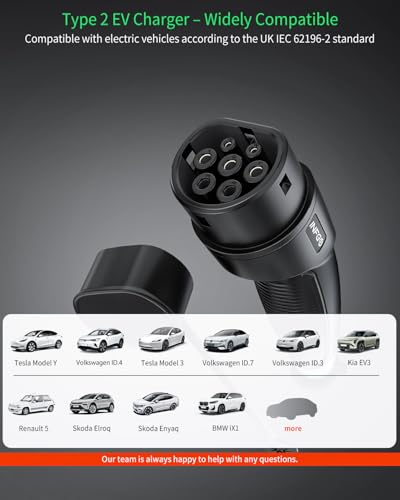 Wide Compatibility: One Type 2 charging cable for many EVs! The INFGO Mobile Wallbox is compatible with most electric vehicles and plug-in hybrids that feature a Type 2 connector — all compliant with the IEC 62196-2 standard.
