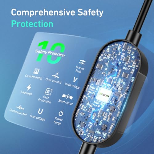 - 【Safe and Reliable】 The EV charger 3 pin plug is certified by CE, UKCA, UL, with multi-layered safety protections, supports automatic power cutoff upon full charge to prevent overcharging. The control box is made of premium PC+ABS material, offering pressure resistance and drop protection. The Flame Retardant Grade UL94-V0 TPU cable has passed 20,000 bend tests. The Type 2 plug withstands 10,000 insertion/removal tests for enhanced durability. The IP65 control box and IP67 type 2 plug (when plugged in), making it suitable for a variety of environments. Note: Do not use directly exposed to rain, snow, or standing water. For prolonged outdoor use, install a rain cover to ensure safety
