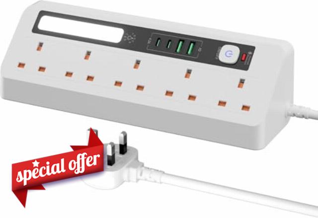 Extension Lead with 2 USB and 2 Type-C, 5 Way Corner Power