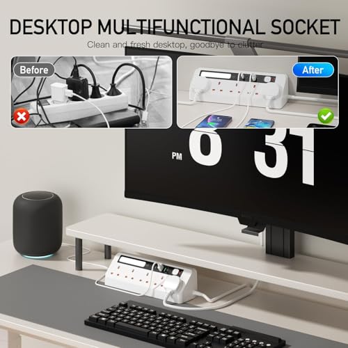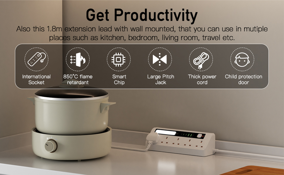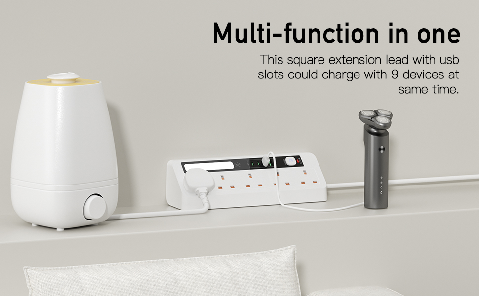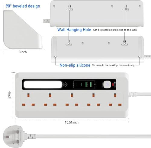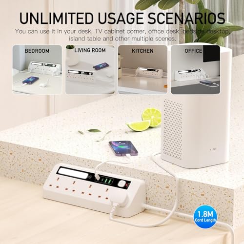 - 1.8 Meter Long Cable:The corner power strip with extension cable 2m gives you flexibility to charge to reach remote outlets and hard-to-reach places