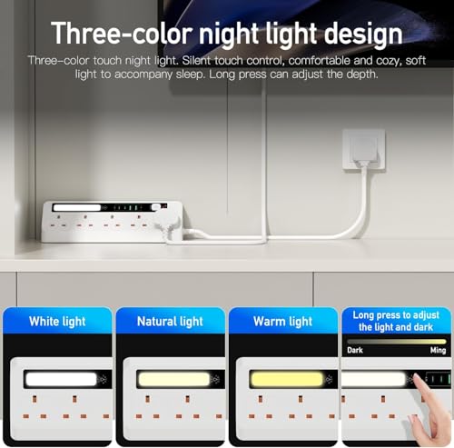 - 3 Color Night Light and Switch:The touch night light can emit soft light, accompanying you to sleep quietly. Long pressing can adjust the brightness. What's more, you can control the switch to save electricity and ensure electrical safety