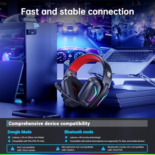 - 2.4GHz Pro-Grade Wireless (≤20ms Latency): Dominate with lag-free performance – our advanced 2.4GHz wireless maintains stable, ultra-low latency connections for perfect audio/video sync. Includes USB-C dongle for instant plug-and-play with PC/PS4/PS5. *Not Xbox compatible. Switch between modes by long-pressing the mic button (2 seconds).