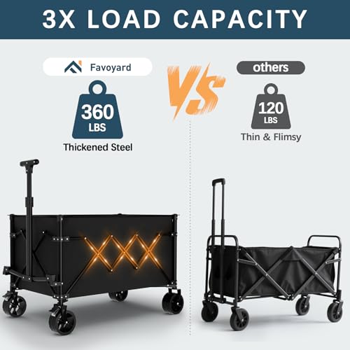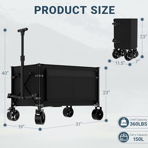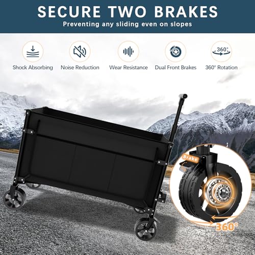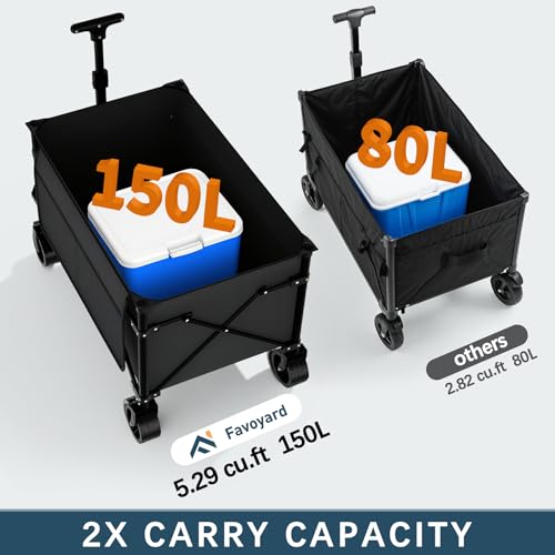 Favoyard 150L Heavy Duty Festival Trolley on Wheels, Folding Camping Trolley with All-Terrain Wheels and Adjustable Handle, Garden Wagon Cart for Beach Outdoor Camping Garden Picnic, Black