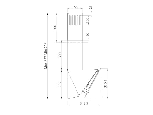 - Adjustable chimney with a height range of 42,5 cm to 58 cm
