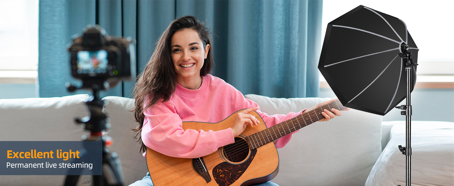 Small Octagonal Softbox.The softbox is in a smaller size with the same brightness and functionality.Ideal for small products, live games, make-up displays and short video shoots that allow for greater focus on detail.A longer 300cm line extends the range of use.