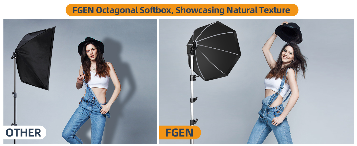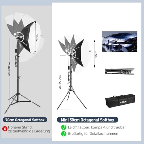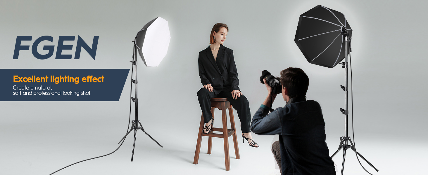 FGen Photography Lighting Softbox,Octagonal Soft Box Wire Length 300cm with 60W 3000-6500K LED Lamps,150cm Adjustable Light Stand for Studio Photography,Video Shooting and Live Gaming