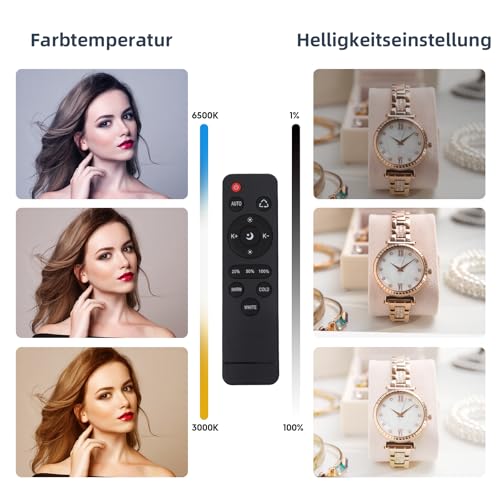 60W 5500lm LED Adjustable Bulb.This softbox lighting kit has 3 colour modes:white,cool and warm.The ranges of colour temperature and brightness are 3000-6500K and 0-100% respectively,which can be freely adjusted by remote control to meet the needs of different photography lights.