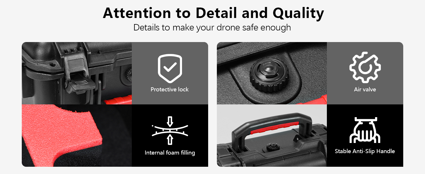 - 【Safe and Sturdy Case】This Neo 2 hard case is made of sturdy PP engineering plastic, which has excellent drop resistance, pressure resistance, wear resistance and waterproof performance. The inner frame of the case is surrounded by a sealing strip and is IP67 rated, providing comprehensive and safe protection for your drone and its accessories.
