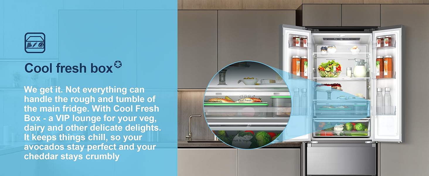 Premium Flat Door Design – Defined by clean lines and quality materials, this fridge freezer with flat-door design and recessed handles brings effortless style to your everyday kitche